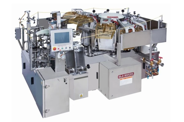 真空ボックスのスリム化により能力は毎分 60袋(最大)を実現。袋詰部と真空部が分かれており、袋詰部にワークを投入後、真空包装まで自動で行う機械。
