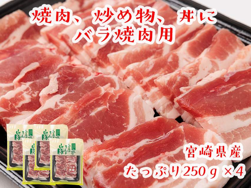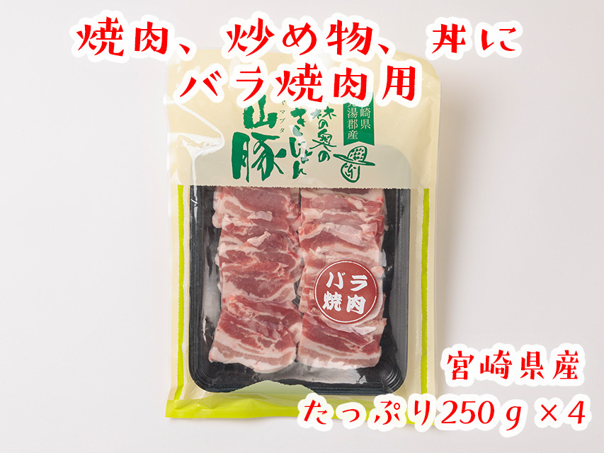 【送料込】宮崎県産 バラ焼肉用 たっぷり240グラム4パック 送料込み4000円ぽっきり