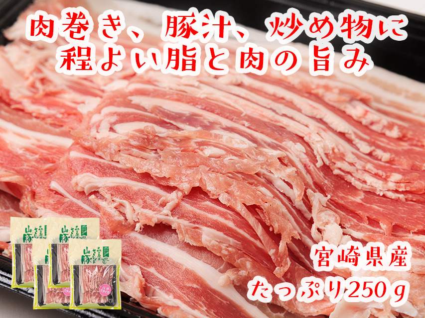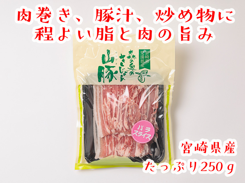 宮崎県の自然の中で育った「山豚」のバラ肉を、使いやすい薄切りに。